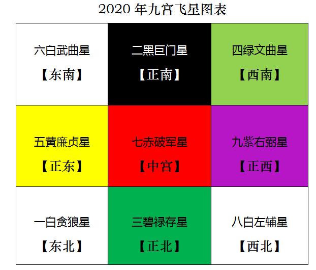 2020年在东南方降临的是六白武曲星,按理说这位也是个不错的吉星,但因为其到了东南方巽宫的地盘,六白五行为金,巽宫五行为木,这两位还是不怎么合得来。这么一来情况就比较明显了,武曲星虽为吉星,到时再东南方并起不到吉星的作用,甚至反而会带来一下小灾小难。